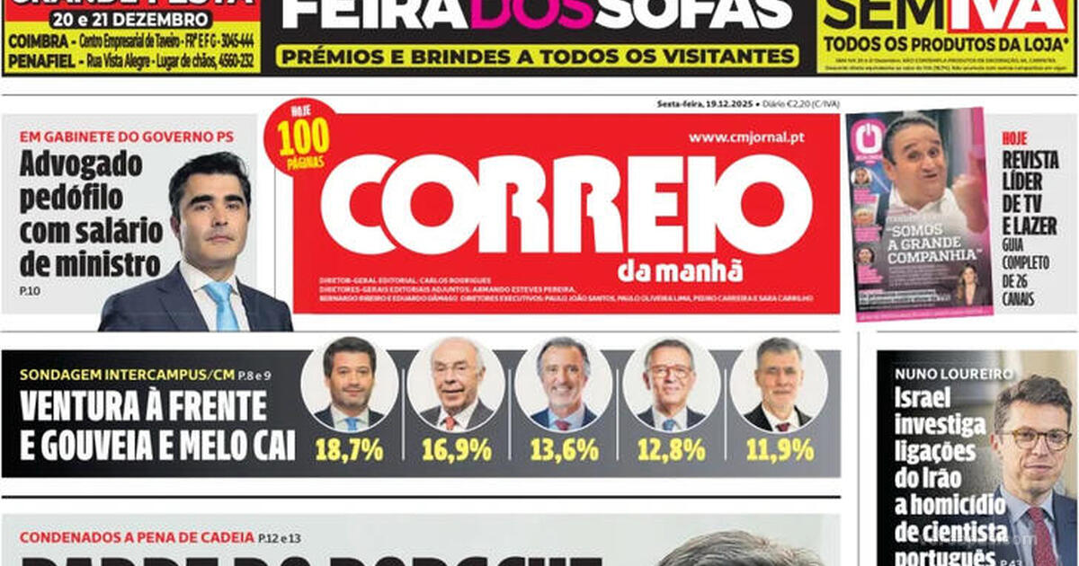 Títulos da capa Correio da Manhã de 19 Dezembro 2025: